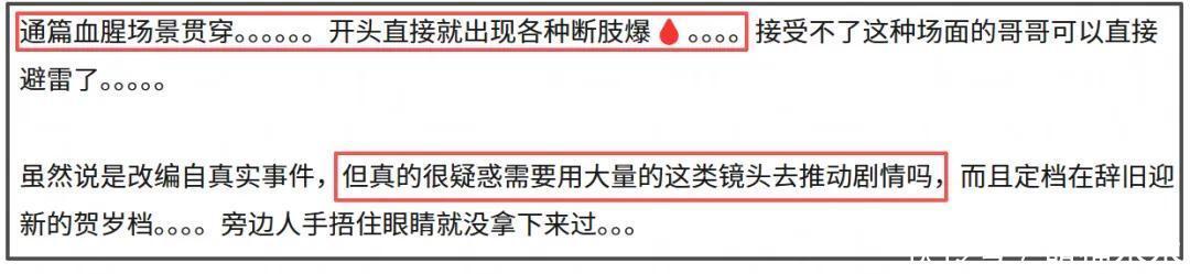 一部战斗题材的作品念念要给不雅众着实千里浸的感受,那对其中干系于血腥暴力场合的把控就至关弘大。从现在不雅众的响应来看,申奥导演似乎莫得作念好把控,许多不雅众对影片最深的感受等于画面过于血腥。