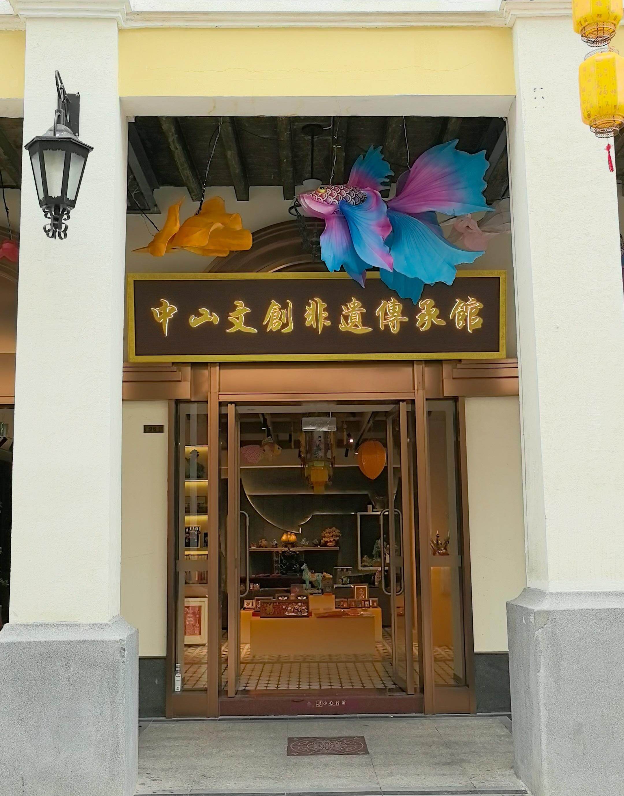 中山文创非遗传承馆紧邻香山生意文化博物馆,这里的货架会“讲故事”,多样“文化广货”丰富多采。