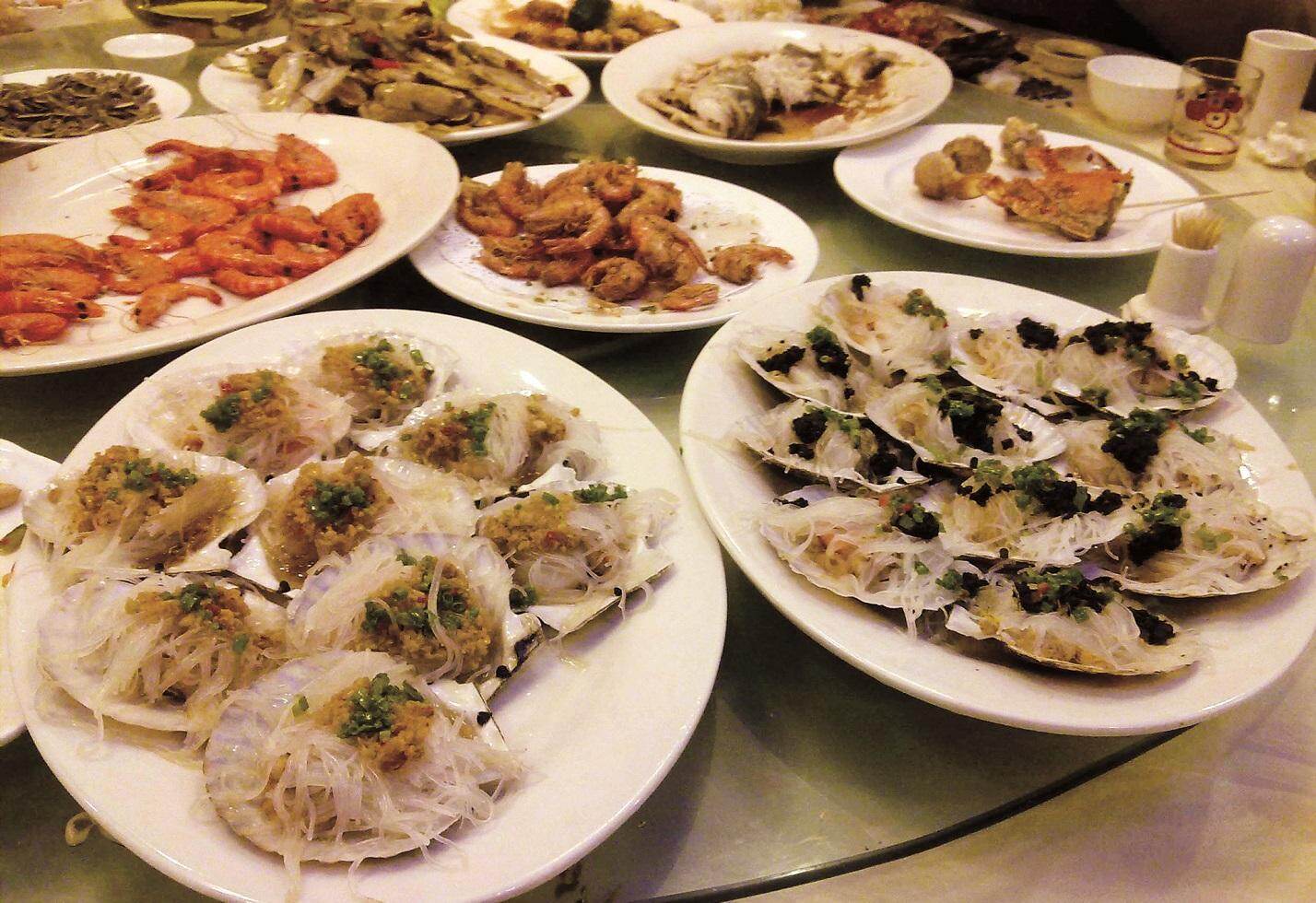 崖口海鲜街的现捞现作念海鲜,清新饶沃,崖口海鲜大排档的虾蟹、煲仔饭,搭配着海景享用,号称舌尖上的盛宴。