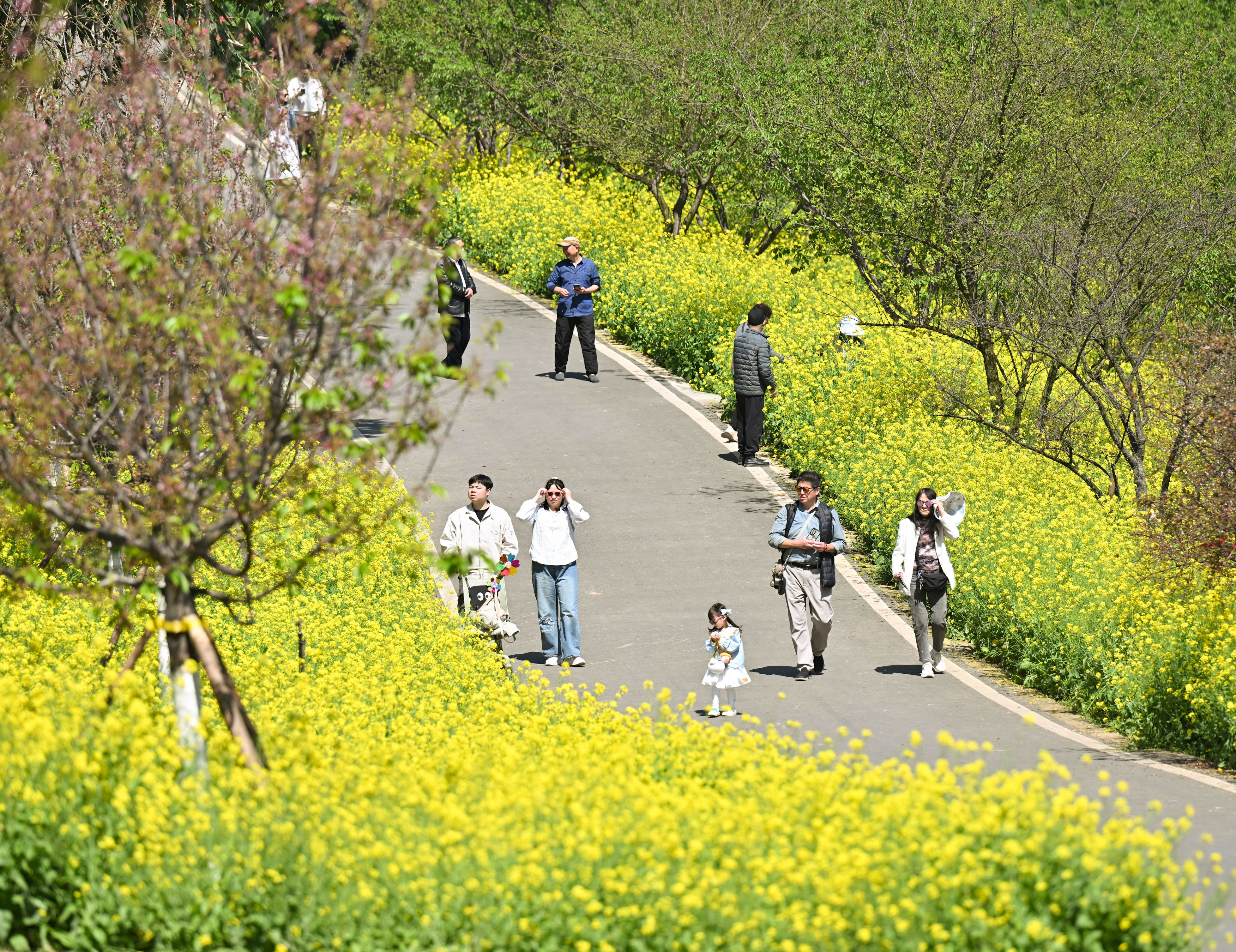 春意正浓,巴南区天坪山云林天乡迎来踏青赏花激越。金黄的油菜花海连绵绽开,与碧波粼粼的水面、如雪的樱林交汇成缤纷画卷。旅客源远流长,处处飘溢着欢声笑语。