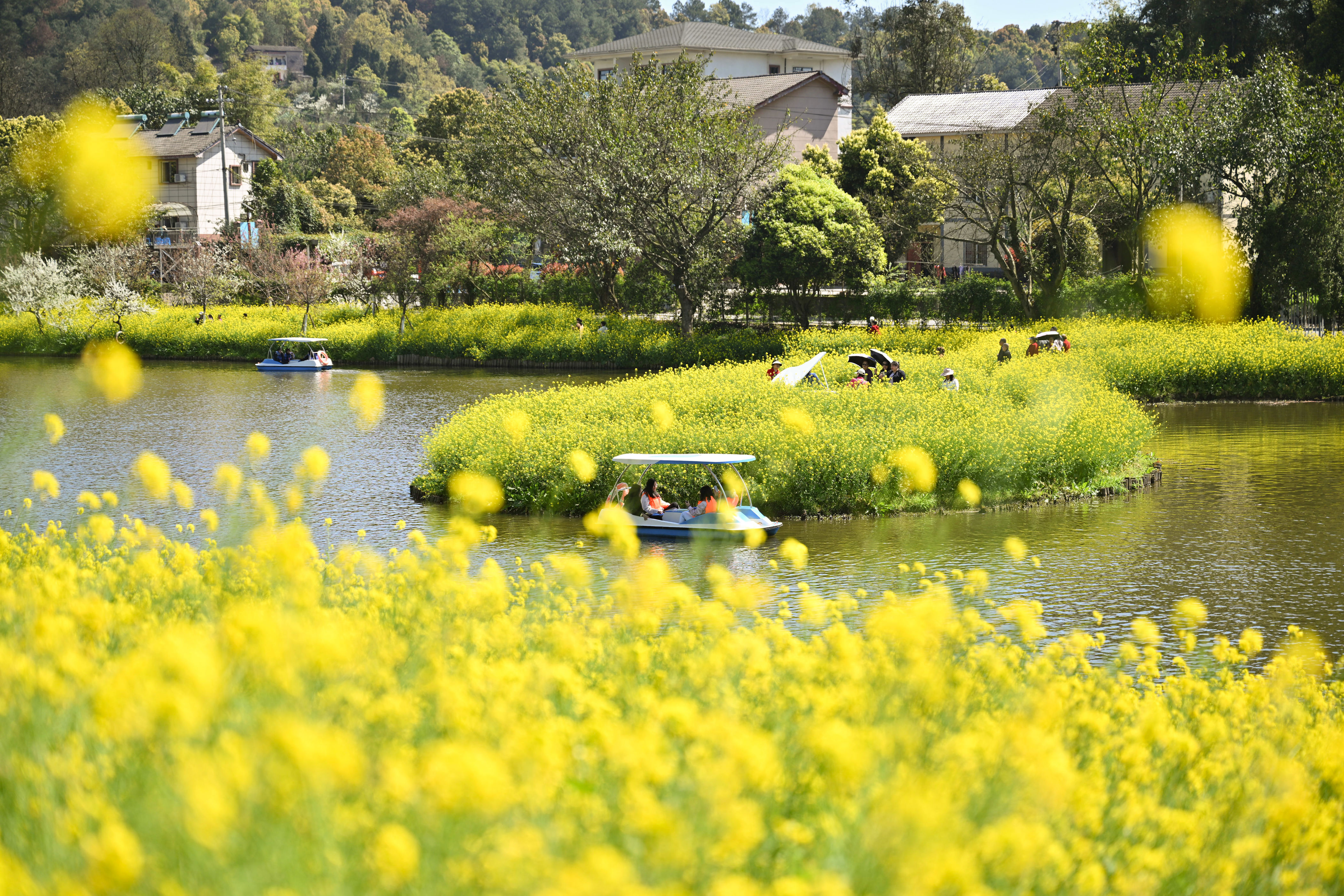 ▲2026年3月10日,巴南区天坪山云林天乡开云体育,旅客荡舟、赏花,享受春日阳光。记者 刘力 摄