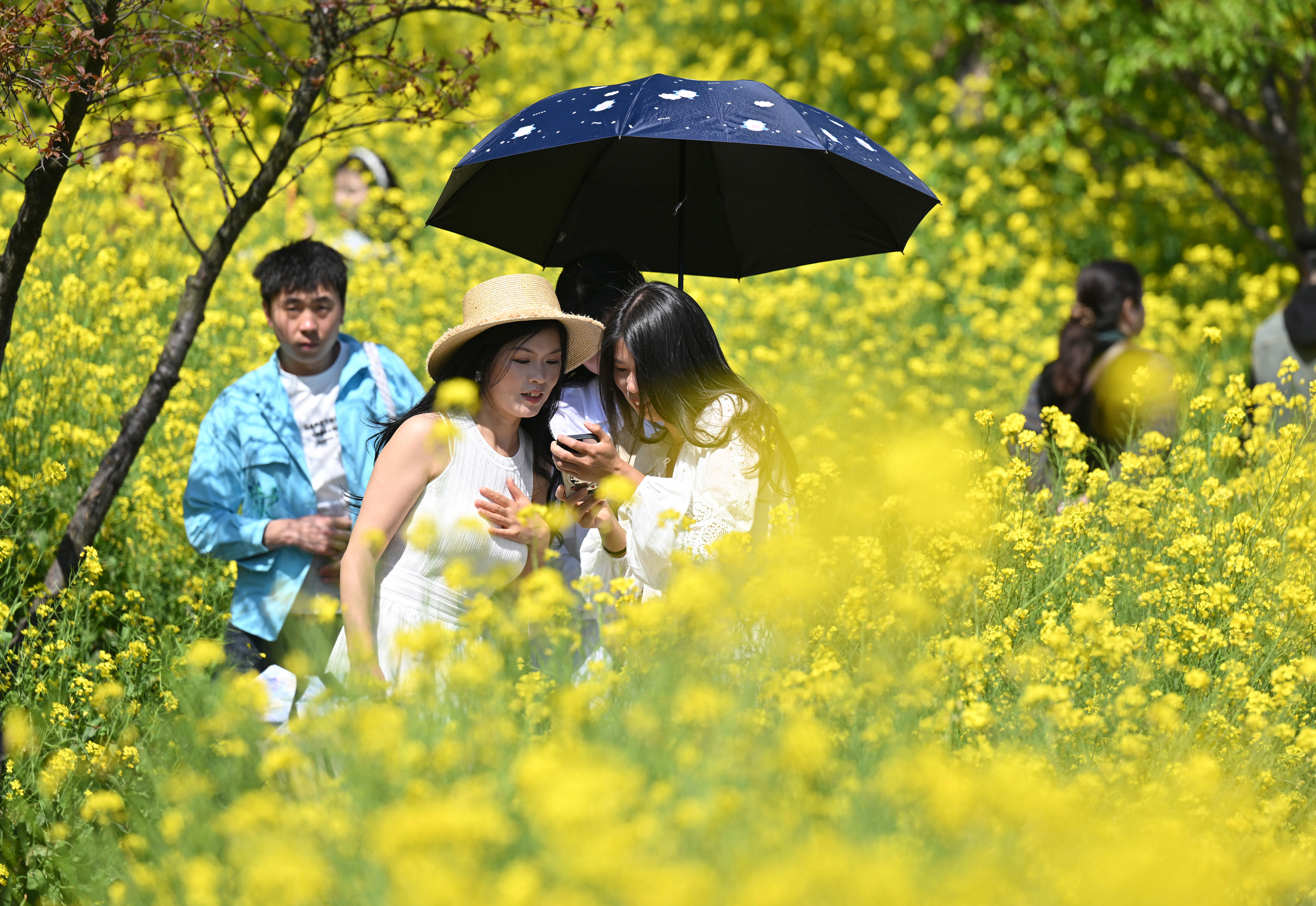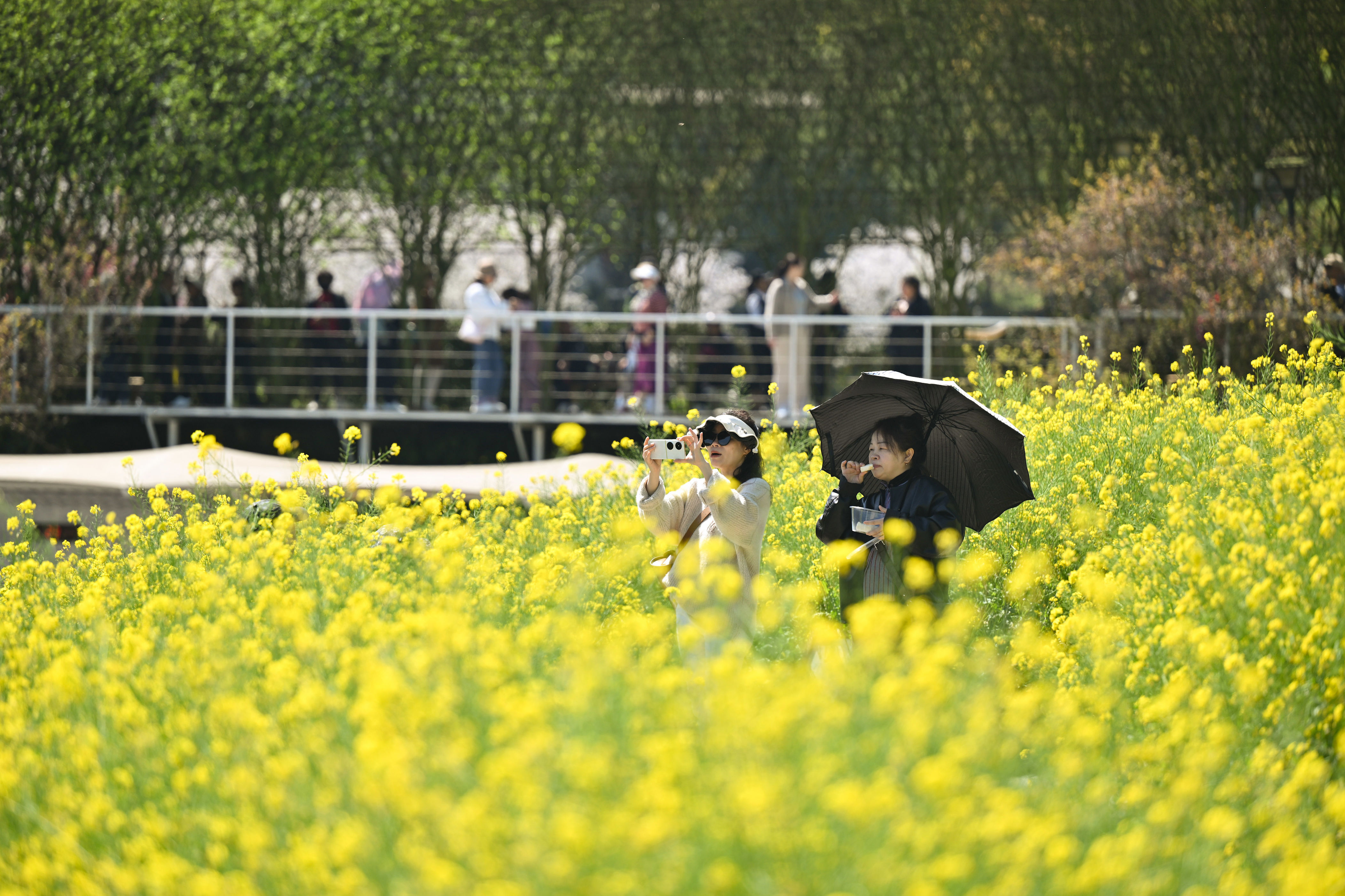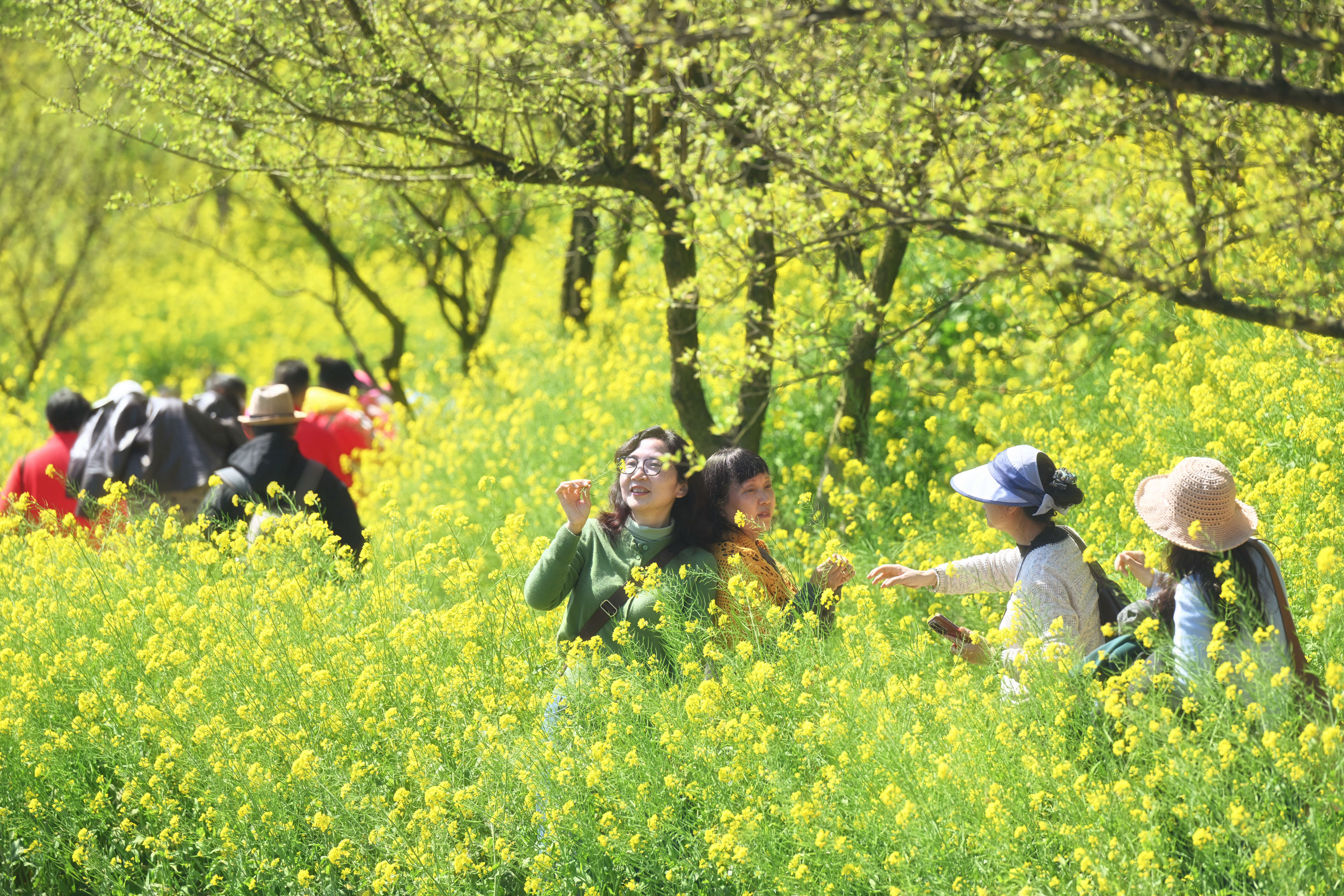 ▲3月10日,巴南区天坪山云林天乡,旅客在油菜花海踏青玩耍。记者 刘力 摄