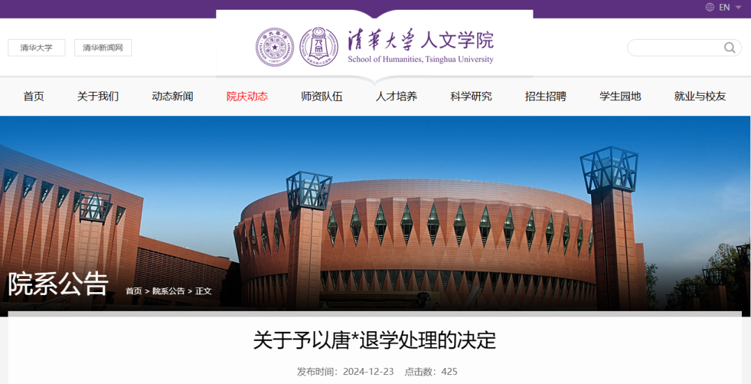 2024年12月25日,清华大学生命科学学院和东说念主体裁院发布拟退学公告,拟对2名博士估计生作出赐与退学处理。