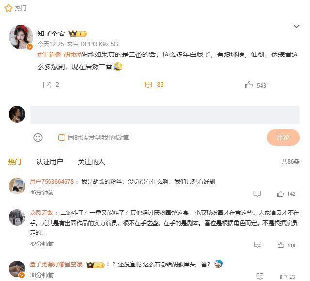 4月21日,电视剧《人命树》的主创气势放出。主演:杨紫、胡歌、张哲华。总筹办:高满堂。编剧:王三毛、磊子等。导演:李雪。剧情轻便,也就地和剧迷们碰头。目击着一部实力派大剧行将面世,但掐架争夺番位这事儿,又在粉丝圈当中驱动扩展了。更是有账号径直“挑事儿”说,胡歌如若是二番,那这些年算是白混了。