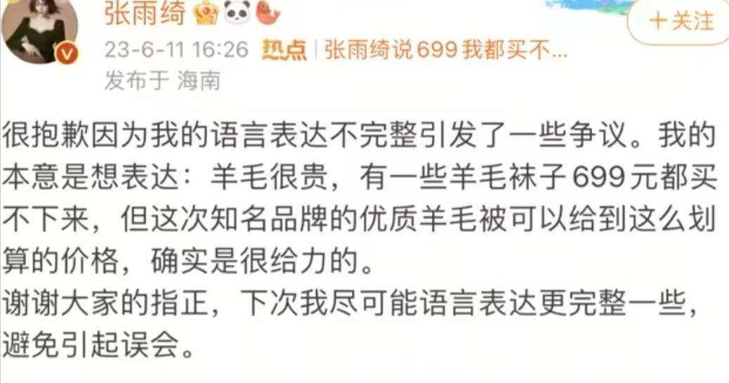 在张雨绮的说念歉声明中,她默示是我方语言抒发不完好,才激发了污蔑。