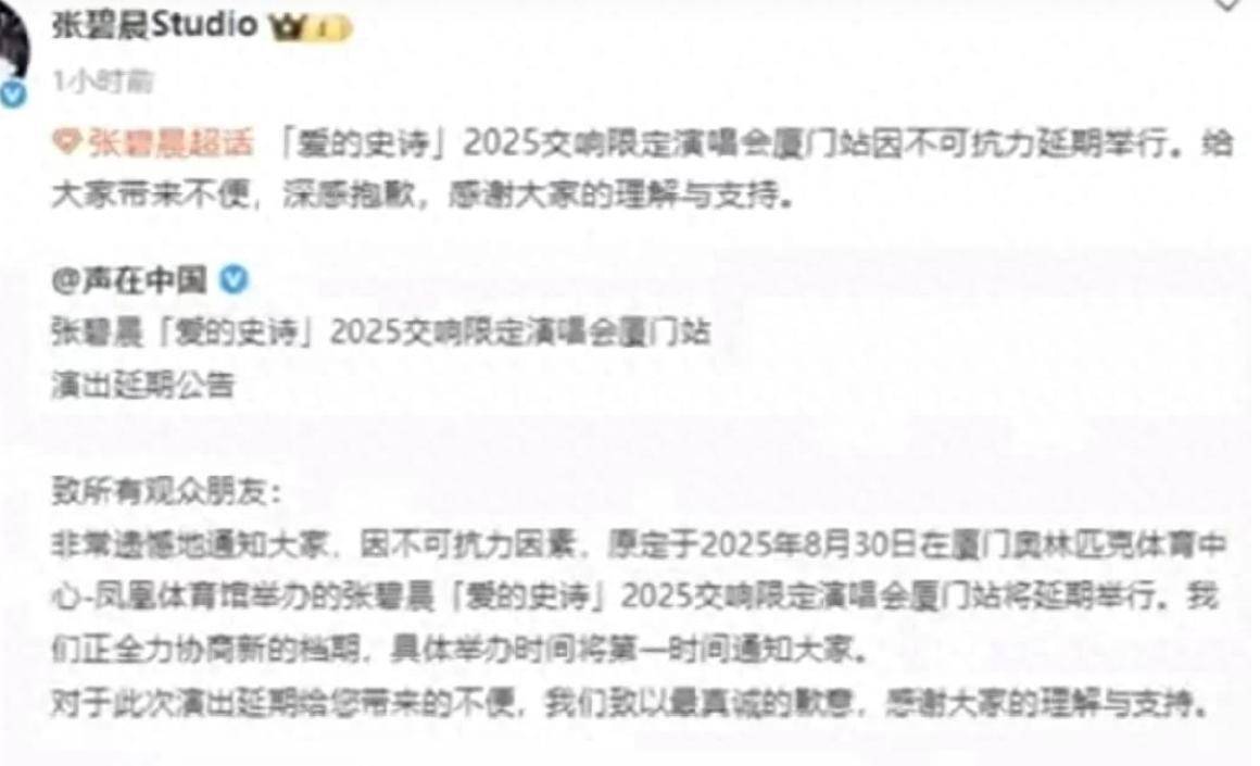 缘由是原计较8月30日举办的一场演唱会,因为不可抗力的要素而进行延期。