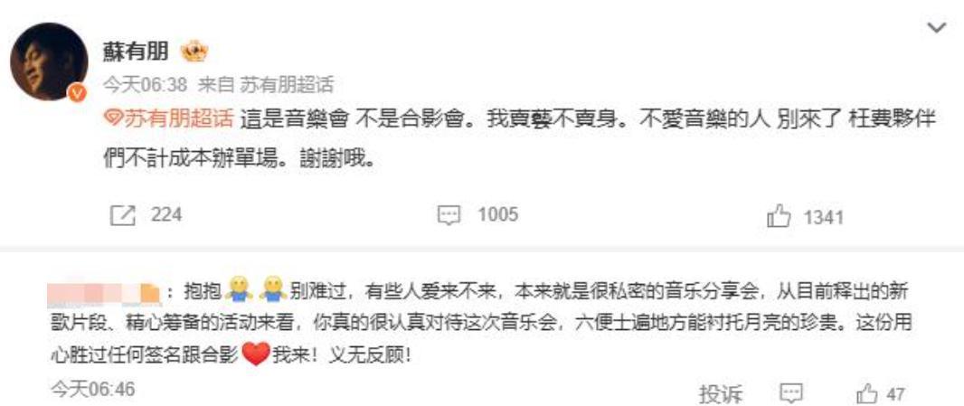 本来人人开更生心准备看演唱会,效力来这样一出,搞得粉丝们也不更生,苏有一又也不乐意。