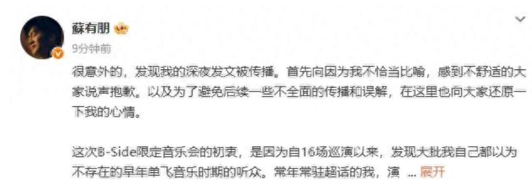 前阵子,苏有一又短暂更阑发文说念歉,激发了网友的弥留原宥。