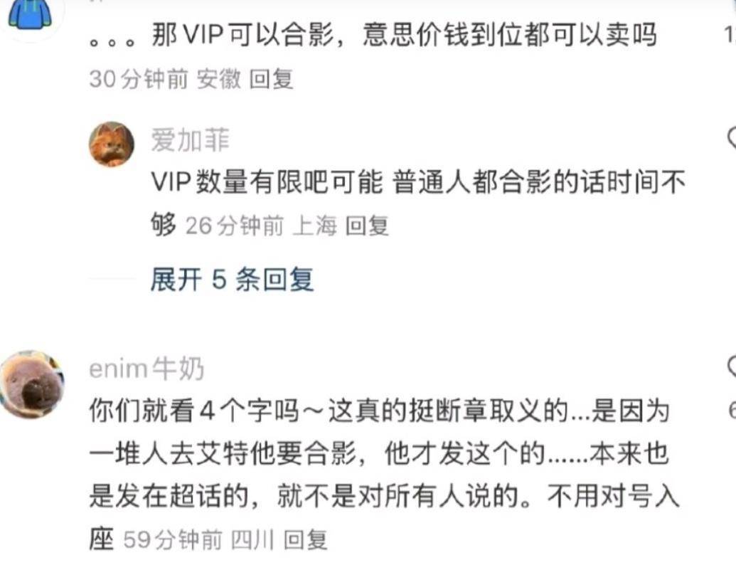 有好多东说念主根柢抢不到VIP票,但是又念念和苏有一又合影,于是好多粉丝就提议肤浅票也能加多合影的才略。