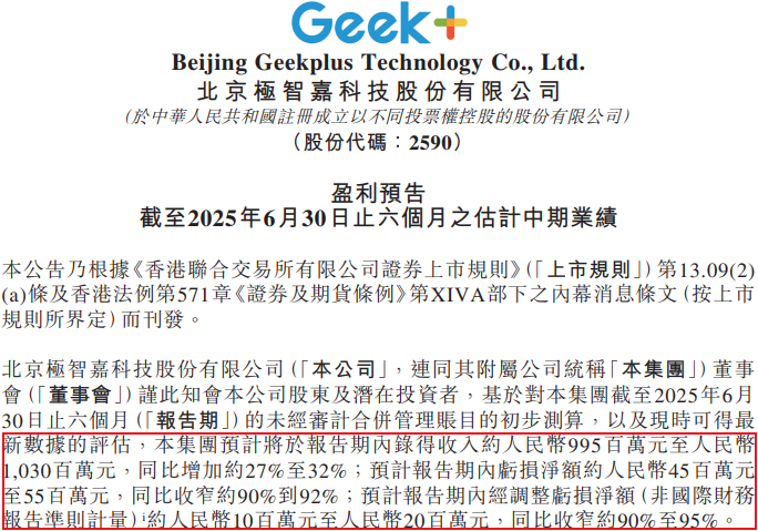 据功绩预报,2025年上半年,该公司瞻望竣事收入为9.95-10.3亿元,同比增长27-32%;瞻望陈说期内公司蚀本净额为4500-5500万元,同比大幅收窄90-92%,经解救蚀本净额为1000-2000万元,亦大幅收窄90-95%。