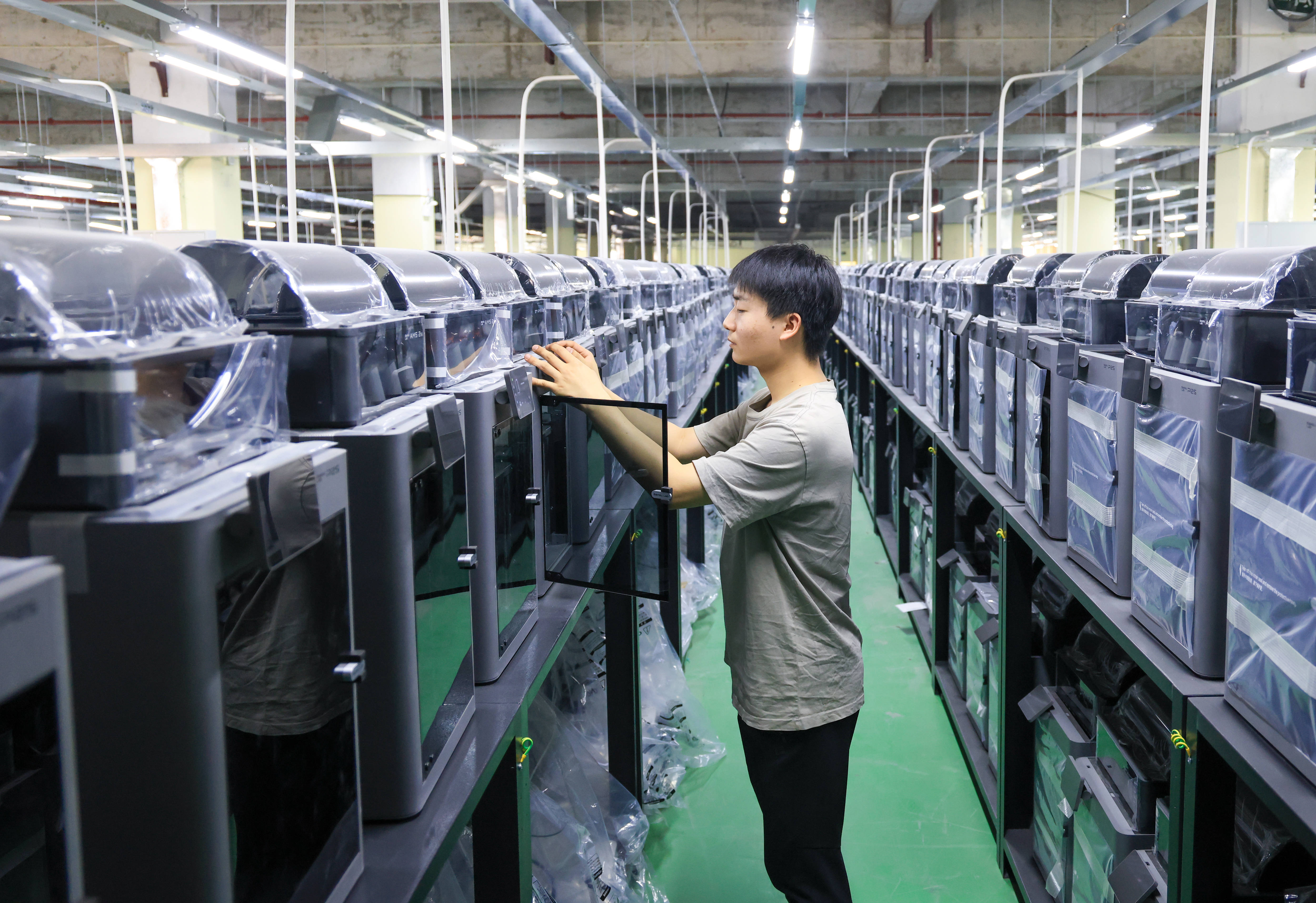 这里是深圳市金石华速科技有限公司在深圳市光明区成立的一家3D打印工场。走进杨盛武责任的车间,莫得忙绿的坐褥线,也莫得先进的机器东谈主、机械臂,看不到来去运载物料的AGV小车,看上去那么日常。但是,这个21岁的小伙子强项地认为,我梗直在作念一件属于将来、也将更变将来的责任。