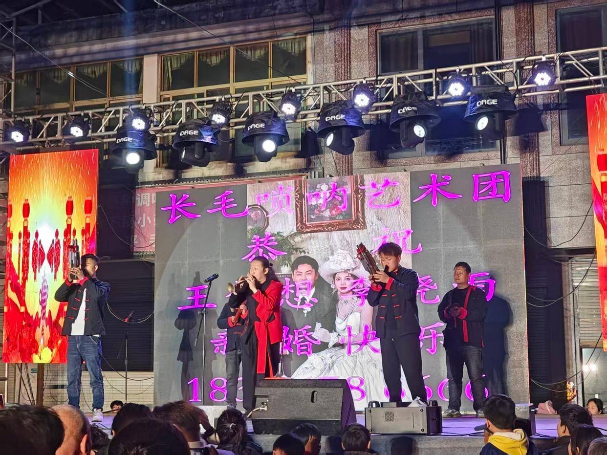 初五晚,早早吃罢暖房酒,村子里的男女老幼便呼一又唤友皆聚临时搭建的大舞台之下。舞台搭在村子的街说念边,瞬息便聚拢来几千不雅众,传奇隔邻几个镇也来了不少东说念主。我和细君正本站在靠后的位置,再回头看,已在东说念主海中央。本觉得仅仅吹唢呐,不虞竟是一台水准挺高的微型晚会。歌舞渐次推出,衣袂飘飘,弦乐摇摇,氛围缓缓“醉了”。村里的小孩全围在舞台边际,有的更是攀上树木和各处高台,常常接住演唱者的歌词高声唱响。让我吃惊的是,当下最红的歌,他们能“对”,古早的歌,亦能“和”。旁东说念主告诉